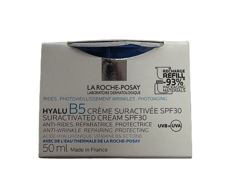 JLA ROCHE-POSAY HYALU B5 krém SPF30 je vysoce účinná péče proti vráskám, ztrátě pevnosti a snížené elasticitě pokožky. Díky kombinaci dvou typů kyseliny hyaluronové, vitamínu B5 a ektoinu poskytuje intenzivní hydrataci, podporuje obnovu kožní bariéry a přispívá k posílení její odolnosti. Jeho součástí je také ochranný faktor SPF30, který pomáhá chránit pleť před každodenním UV zářením, jež je jedním z hlavních faktorů předčasného stárnutí. Výhodou je i možnost zakoupit tento produkt jako náhradní náplň.