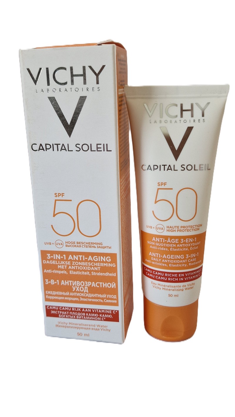 Protivráskový krém na opalování SPF 50+ Idéal Soleil Anti-Age je určený pro citlivou pleť a pleť alergickou na slunce. Poskytuje ji vysokou a účinnou ochranu před škodlivým UV zářením a tím ji i chrání před předčasným stárnutím. Navíc redukuje už vzniklé jemné vrásky a linky a je hypoalergenní. Vlastnosti: vysoká ochrana před sluncem, hypoalergenní, chrání před stárnutím, redukuje vrásky.