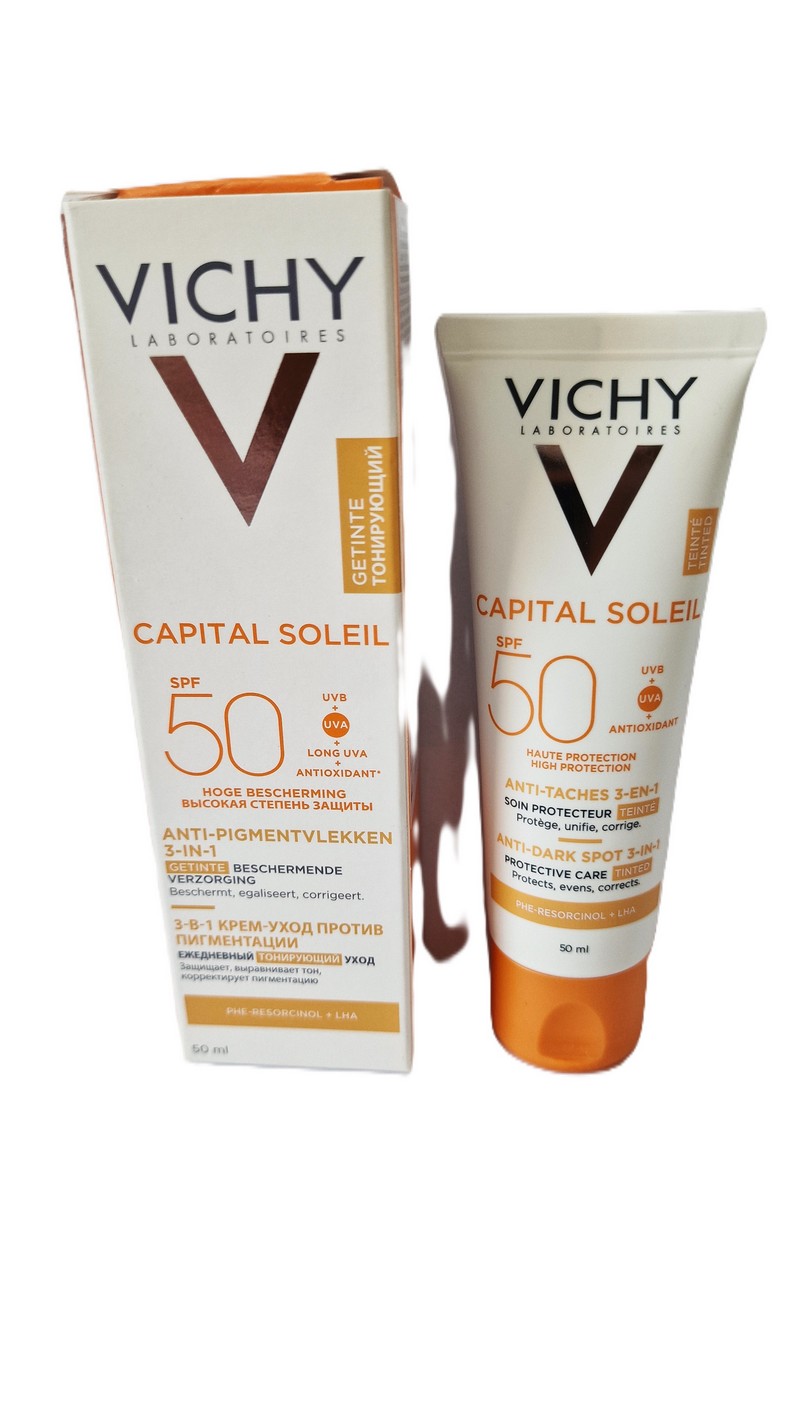 Popis VICHY Soleil Krém proti tmavým skvrnám SPF50+ 50ml - Krém proti tmavým skvrnám. SPF 50+. Velmi vysoká ochrana. Sjednocení - Korekce - Prevence.